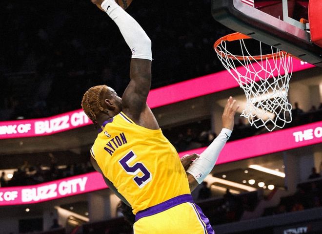 而且也不是下放后就立刻随队,而是在本周某个时间段,会跟随南湾湖人队一起训练。按照美媒预估,最乐观的情况,詹姆斯可以在11月18日对阵爵士的比赛中迎来复出。而此前遭遇右侧腹股沟拉伤的里夫斯,在连续缺阵三场比赛后,本场比赛可以出战。湖人本赛季虽然战绩不错,但球队整体效率一般,场均得分117.8联盟第15位,场均失分117.1联盟第16位,这也和球队缺兵少将有关,替补席能用的球员有点少。不过本场比赛雷迪克重新恢复到东契奇最熟悉的阵容配置:里夫斯+斯玛特+八村塁+艾顿。