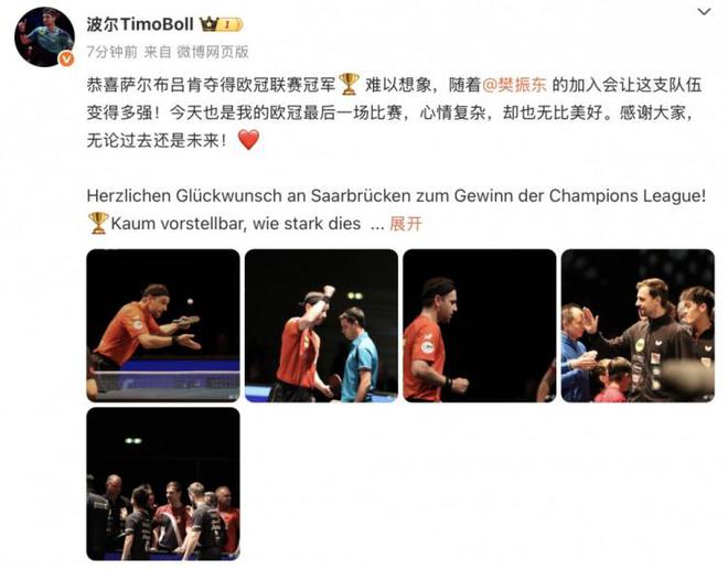 波尔:欧冠最后一舞心情复杂但美好,樊振东会让萨尔布吕肯更强