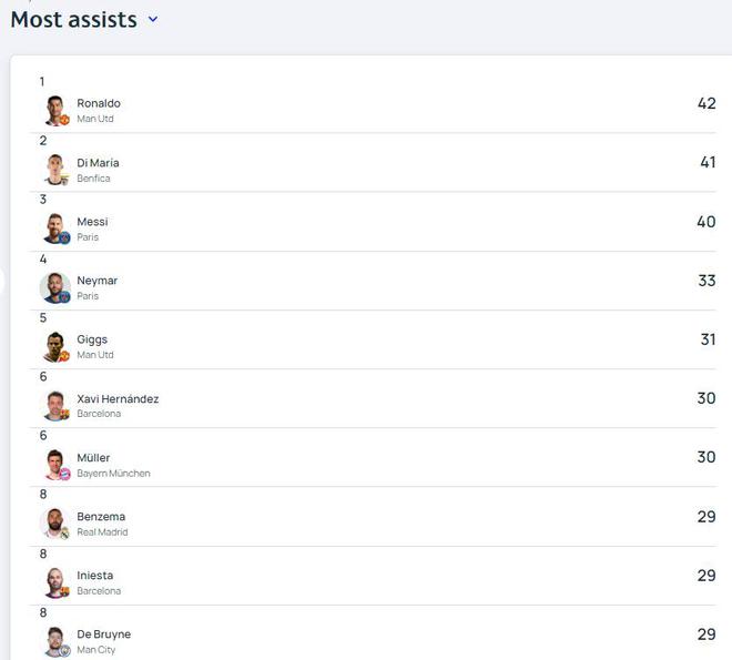 谁能超越?C罗欧冠助攻榜第一,迪马利亚与其只差1助现将离开欧洲
