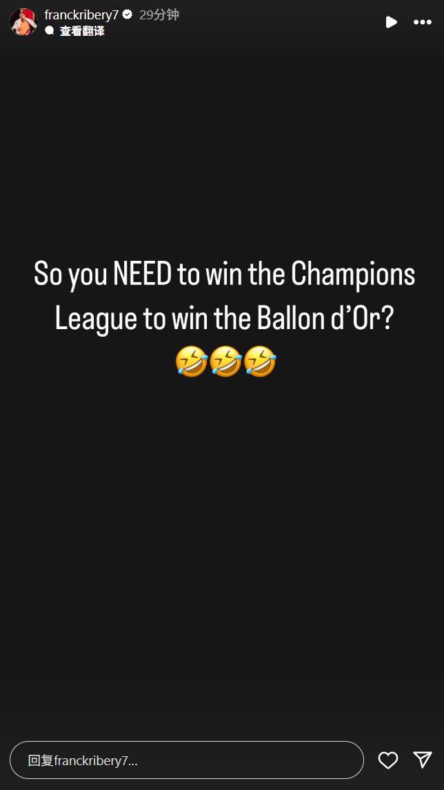 里贝里疑似嘲讽C罗:拿金球奖真要靠欧冠吗?