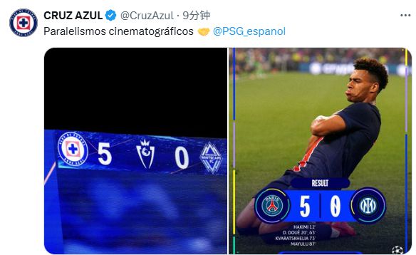 蓝十字5-0领先温哥华白浪,球队官方发文:致敬欧冠决赛